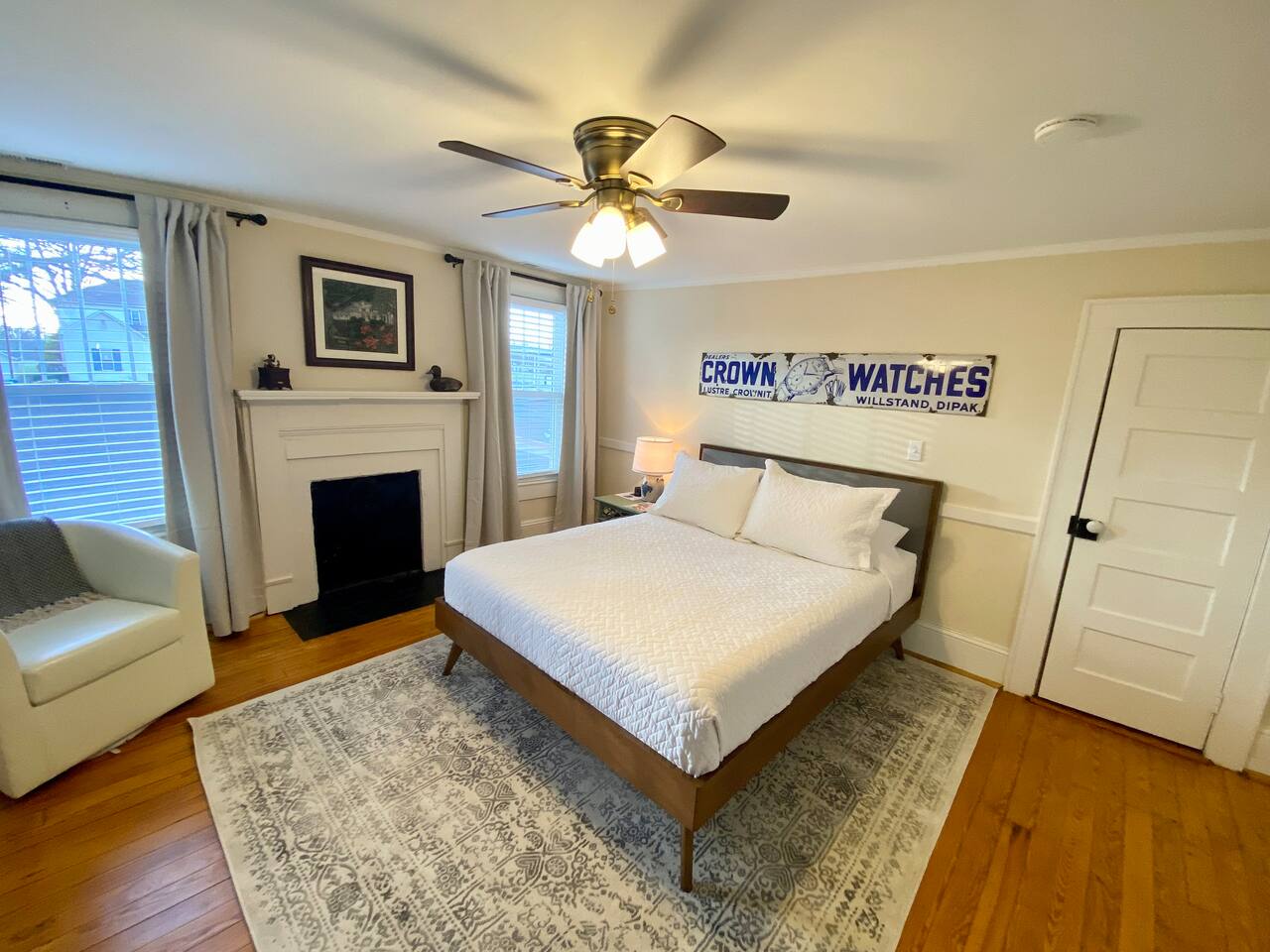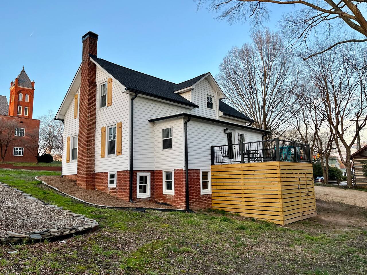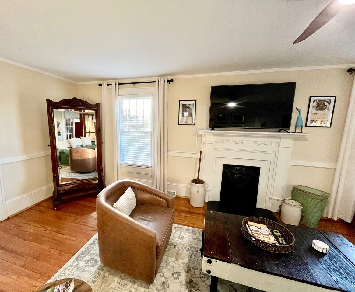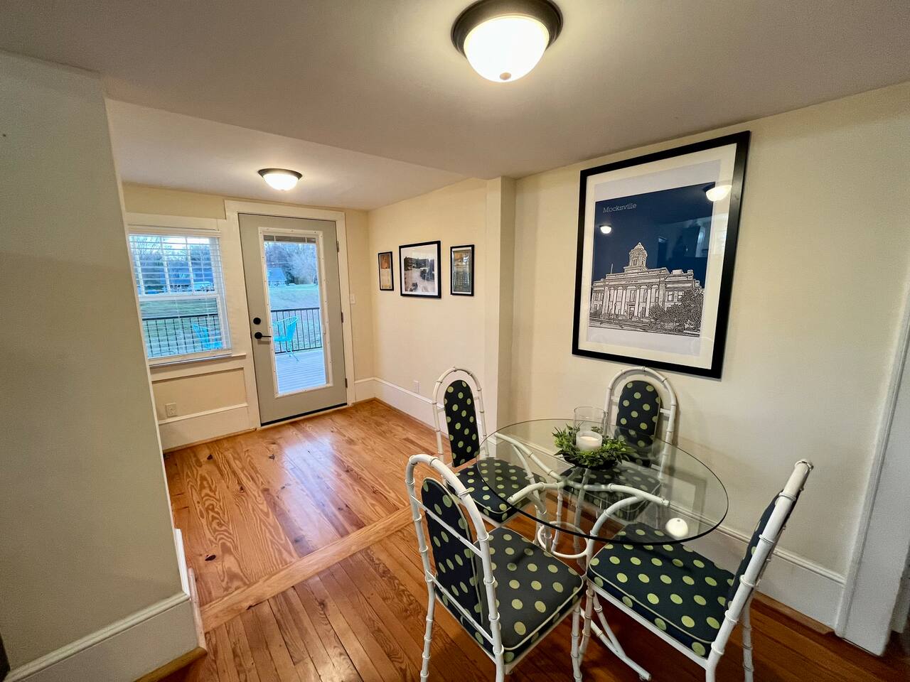 Cabin: The cabin features a king size bed, stainless steel appliances, screened-in porch and a washer/dryer for your convenience. All towels and linens are provided. The living room and bedroom are equipped with Smart TVs with Netflix or any other streaming apps available for use (you must use your own sign-in credentials). The living room includes a desk set up for your home-office needs. The bedroom is complete with a king size bed, Roku TV, large closet, and private bathroom with tub/shower (there is a step to get into the tub/shower). There is a couch in the living room and air mattresses available for additional guests. The kitchen is fully equipped with everything you’d need for a weekend getaway or month-long stay - stove, refrigerator, microwave, dishwasher, Keurig, and more. *The bedroom, bathroom, and laundry room are located on the second floor. The stairs going to the second floor are somewhat steep. **There is potential for road noise as the cabin is located in Downtown Mocksville. Cottage: Every room in the cottage showcases unique antiques and/or historic pictures of Mocksville/Davie County. Descriptions are available for the majority of the pictures, offering insights into their historical significance. The cottage has one main-level bedroom and two upstairs bedrooms. There is one bathroom on each floor, stainless steel appliances, a spacious living room, and a washer/dryer for your convenience. Towels and linens are provided for your comfort. The living room and bedrooms are equipped with Smart TVs with Netflix or any other streaming apps available for use (you must use your own sign-in credentials). The upstairs bedroom includes a desk set up for your home-office needs. Each bedroom is complete with a queen size bed and Smart TV. There is a couch in the living room and air mattresses available for additional guests. Each bathroom is stocked with towels, body wash, shampoo, conditioner, hair dryer, and makeup mirror. The kitchen is fully equipped with everything you’d need for a weekend getaway or month-long stay - stove, refrigerator, microwave, dishwasher, Keurig, and more. *There are additional steps at the top of the stairs to get into the upstairs bedrooms and bathroom. The steps are marked with yellow signs on the walls. Mocksville: During the day, take advantage of charming and historic downtown Mocksville. There are excellent restaurants, shops, and bars/pubs. Other nearby towns/cities + attractions include: Winston Salem: 25 miles Salisbury: 18 miles Yadkinville: 19 miles WinMock at Kinderton: 13 miles Old Salem: 25 miles Raylen Winery: 7 miles Bermuda Run Golf Course: 12 miles Oak Valley Golf Course: 12 miles Tanglewood: 14 miles Reynolda Village: 25 miles