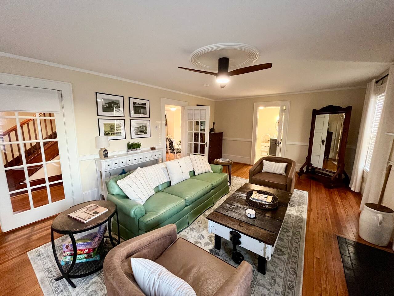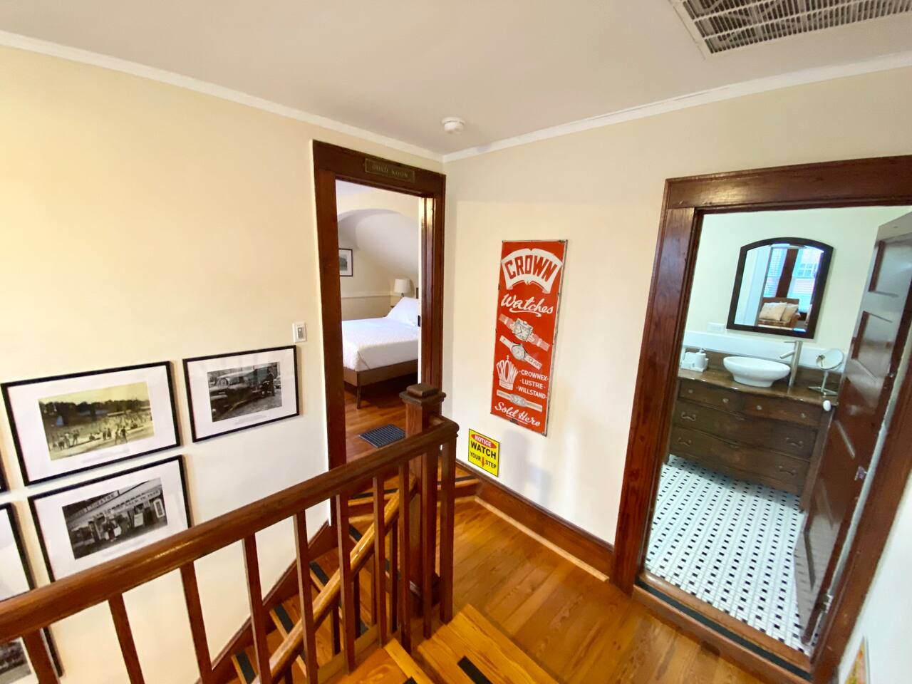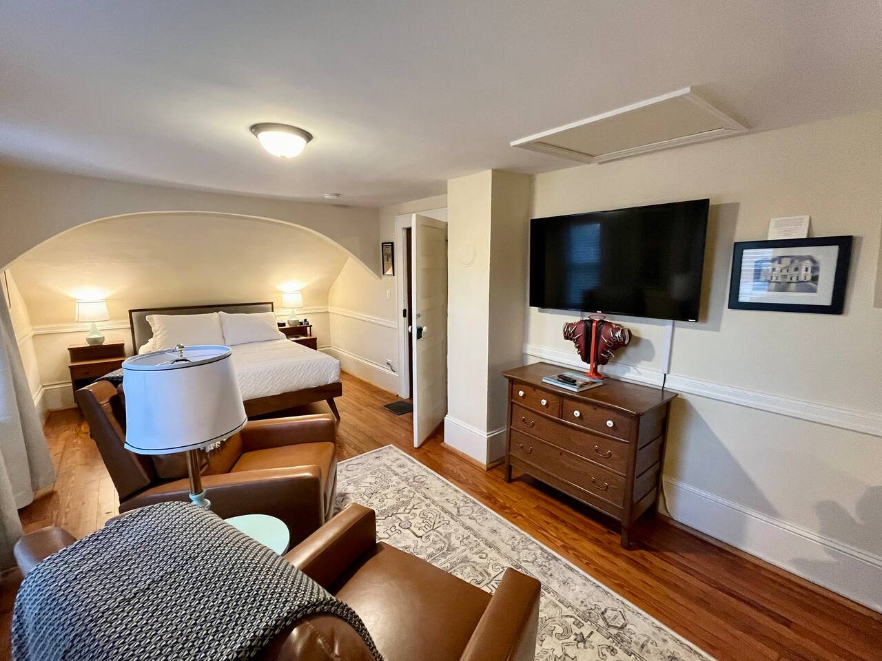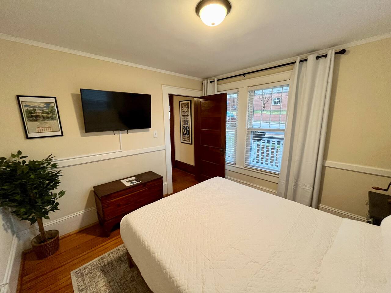 Cabin: The cabin features a king size bed, stainless steel appliances, screened-in porch and a washer/dryer for your convenience. All towels and linens are provided. The living room and bedroom are equipped with Smart TVs with Netflix or any other streaming apps available for use (you must use your own sign-in credentials). The living room includes a desk set up for your home-office needs. The bedroom is complete with a king size bed, Roku TV, large closet, and private bathroom with tub/shower (there is a step to get into the tub/shower). There is a couch in the living room and air mattresses available for additional guests. The kitchen is fully equipped with everything you’d need for a weekend getaway or month-long stay - stove, refrigerator, microwave, dishwasher, Keurig, and more. *The bedroom, bathroom, and laundry room are located on the second floor. The stairs going to the second floor are somewhat steep. **There is potential for road noise as the cabin is located in Downtown Mocksville. Cottage: Every room in the cottage showcases unique antiques and/or historic pictures of Mocksville/Davie County. Descriptions are available for the majority of the pictures, offering insights into their historical significance. The cottage has one main-level bedroom and two upstairs bedrooms. There is one bathroom on each floor, stainless steel appliances, a spacious living room, and a washer/dryer for your convenience. Towels and linens are provided for your comfort. The living room and bedrooms are equipped with Smart TVs with Netflix or any other streaming apps available for use (you must use your own sign-in credentials). The upstairs bedroom includes a desk set up for your home-office needs. Each bedroom is complete with a queen size bed and Smart TV. There is a couch in the living room and air mattresses available for additional guests. Each bathroom is stocked with towels, body wash, shampoo, conditioner, hair dryer, and makeup mirror. The kitchen is fully equipped with everything you’d need for a weekend getaway or month-long stay - stove, refrigerator, microwave, dishwasher, Keurig, and more. *There are additional steps at the top of the stairs to get into the upstairs bedrooms and bathroom. The steps are marked with yellow signs on the walls. Mocksville: During the day, take advantage of charming and historic downtown Mocksville. There are excellent restaurants, shops, and bars/pubs. Other nearby towns/cities + attractions include: Winston Salem: 25 miles Salisbury: 18 miles Yadkinville: 19 miles WinMock at Kinderton: 13 miles Old Salem: 25 miles Raylen Winery: 7 miles Bermuda Run Golf Course: 12 miles Oak Valley Golf Course: 12 miles Tanglewood: 14 miles Reynolda Village: 25 miles