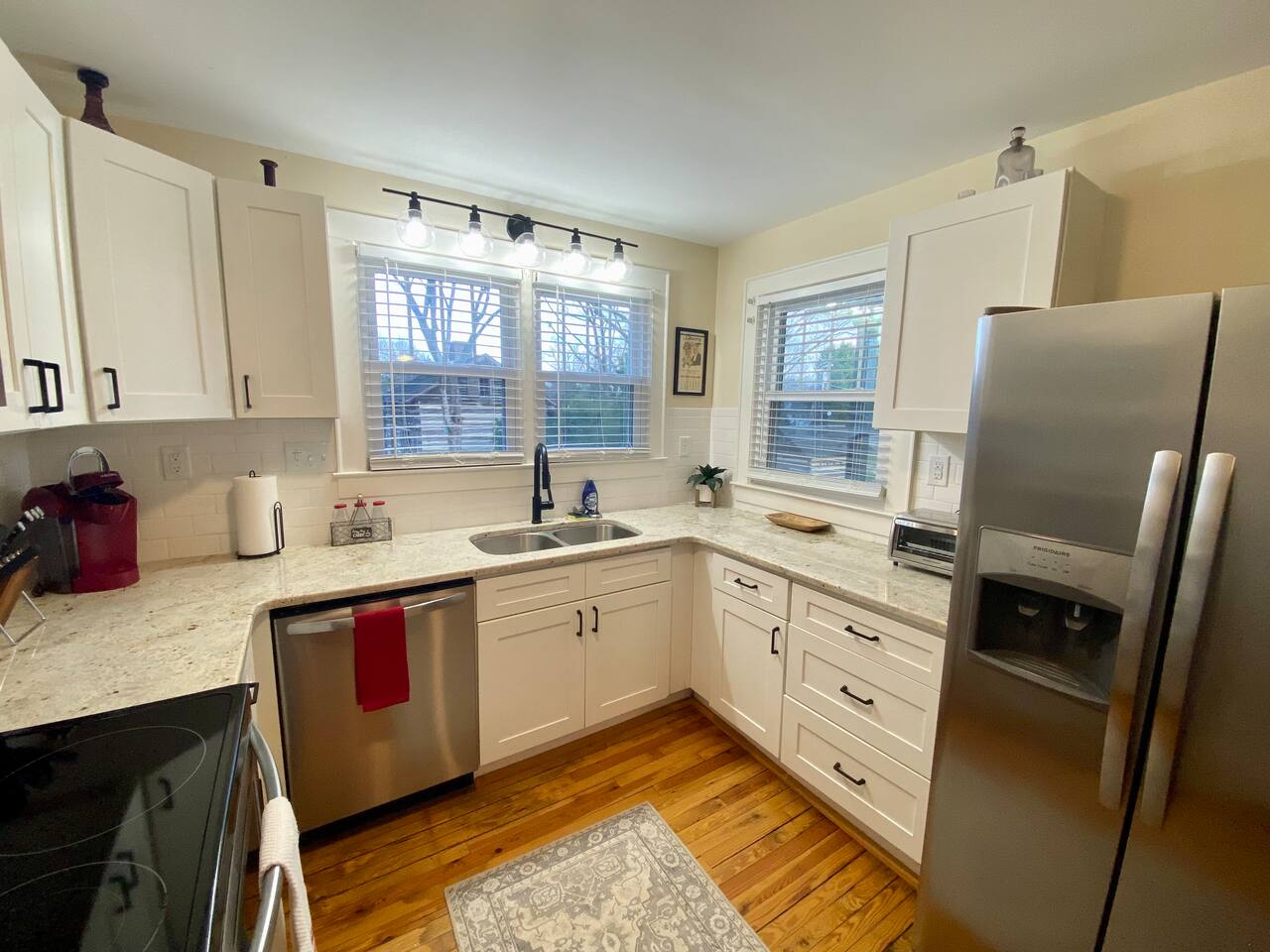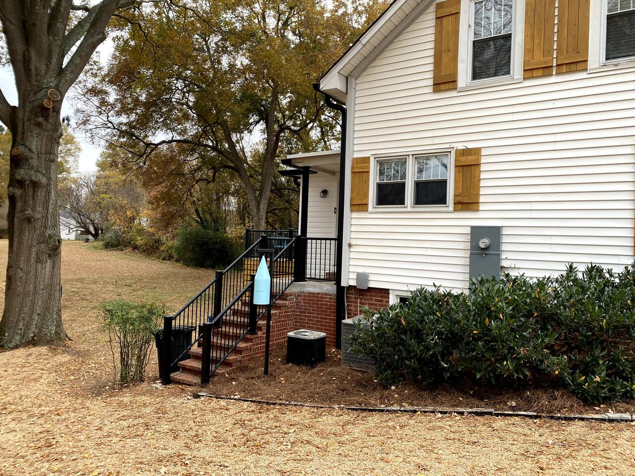 Every room in the cottage showcases unique antiques and/or historic pictures of Mocksville/Davie County. Descriptions are available for the majority of the pictures, offering insights into their historical significance. The cottage has one main-level bedroom and two upstairs bedrooms. There is one bathroom on each floor, stainless steel appliances, a spacious living room, and a washer/dryer for your convenience. Towels and linens are provided for your comfort. The living room and bedrooms are equipped with Smart TVs with Netflix or any other streaming apps available for use (you must use your own sign-in credentials). The upstairs bedroom includes a desk set up for your home-office needs. Each bedroom is complete with a queen size bed and Smart TV. There is a couch in the living room and air mattresses available for additional guests. Each bathroom is stocked with towels, body wash, shampoo, conditioner, hair dryer, and makeup mirror. The kitchen is fully equipped with everything you’d need for a weekend getaway or month-long stay - stove, refrigerator, microwave, dishwasher, Keurig, and more. During the day, take advantage of charming and historic downtown Mocksville. There are excellent restaurants, shops, and bars/pubs. Other nearby towns/cities + attractions include: Winston Salem: 25 miles Salisbury: 18 miles Yadkinville: 19 miles WinMock at Kinderton: 13 miles Old Salem: 25 miles Rayson Winery: 7 miles Bermuda Run Golf Course: 12 miles Oak Valley Golf Course: 12 miles Tanglewood: 14 miles Reynolda Village: 25 miles *There are additional steps at the top of the stairs to get into the upstairs bedrooms and bathroom. The steps are marked with yellow signs on the walls.